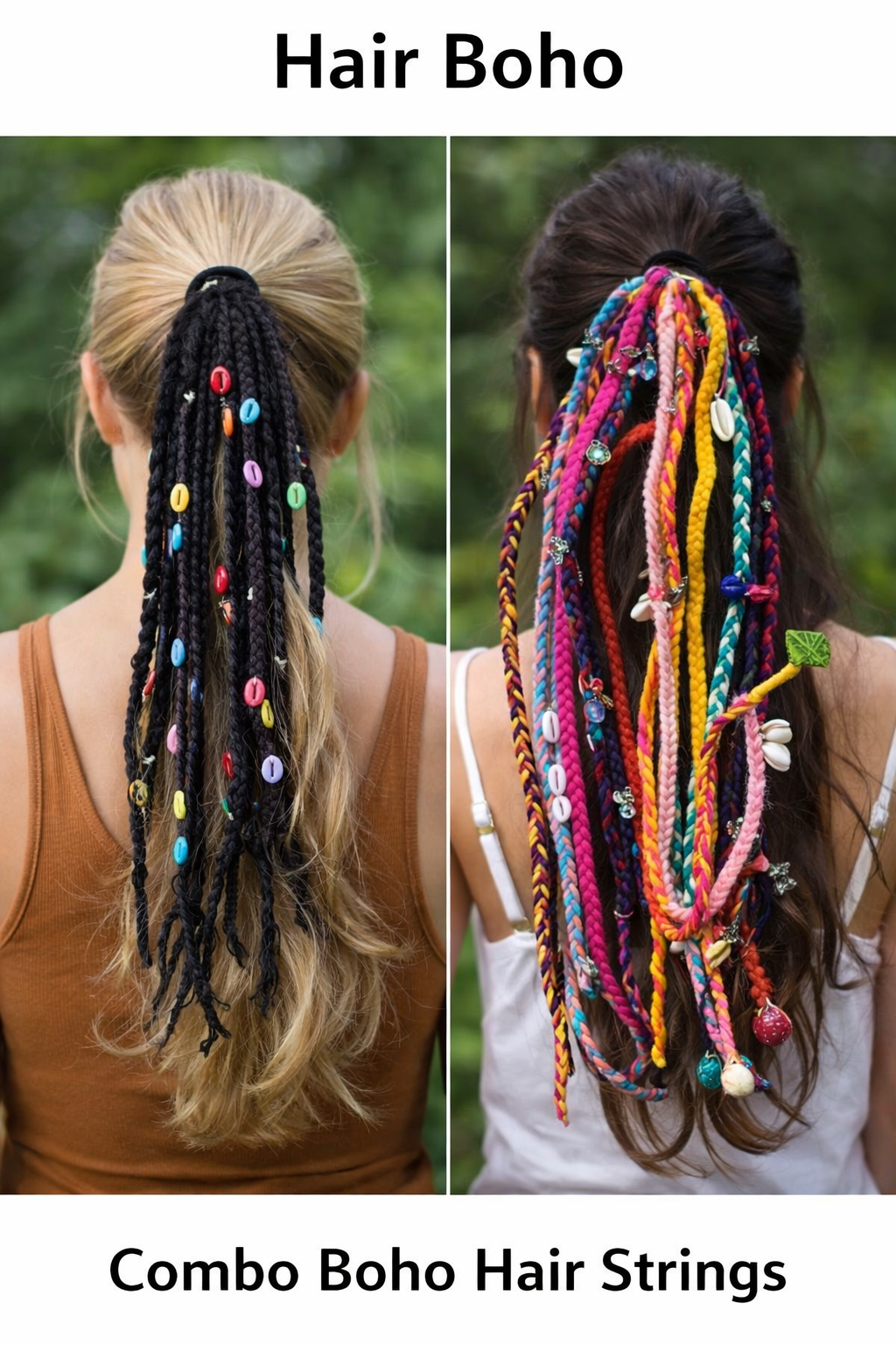 ✨ Hair Boho Combo – Black 14 Inch & Multicolour 20 Inch Boho Hair Accessories Set
